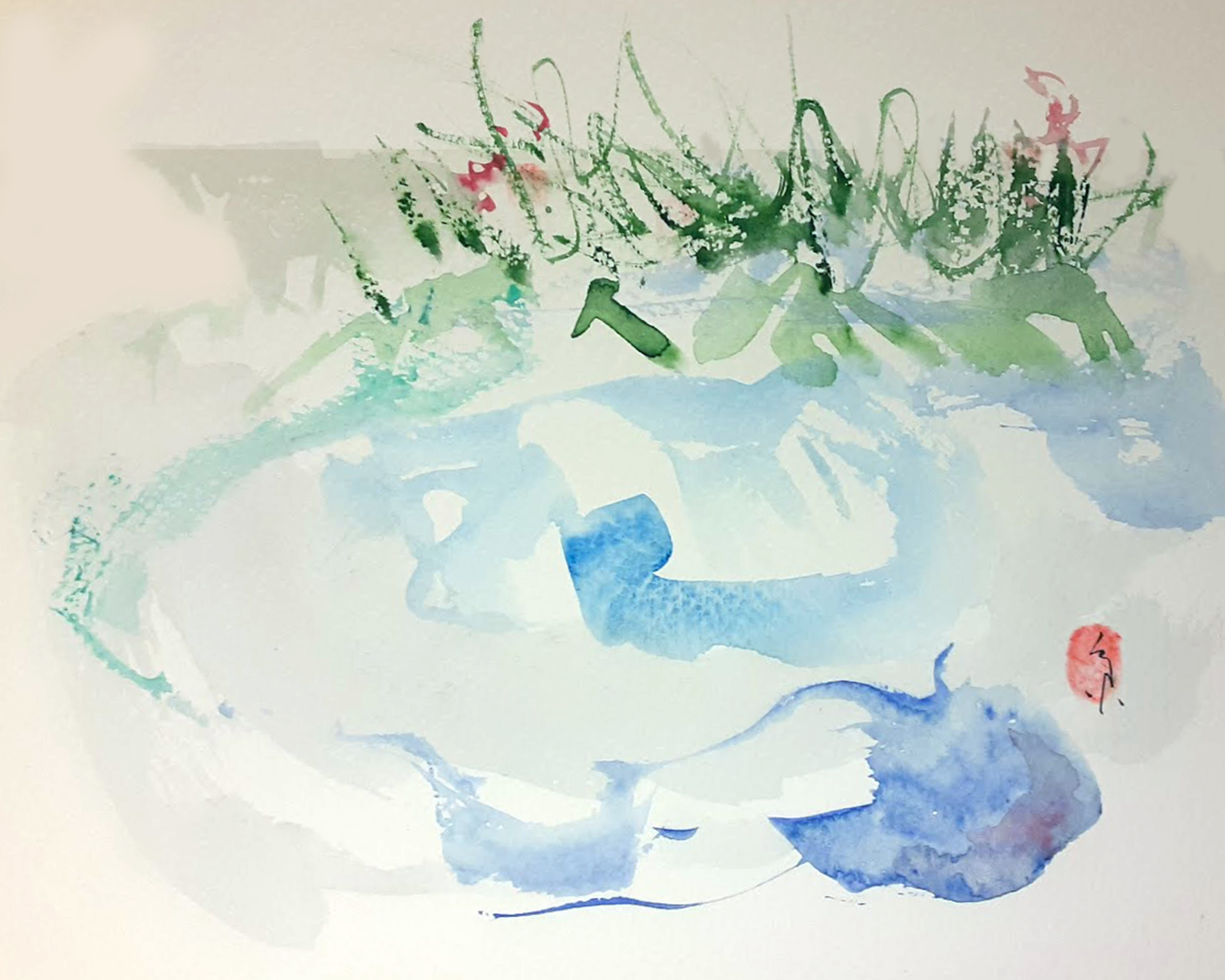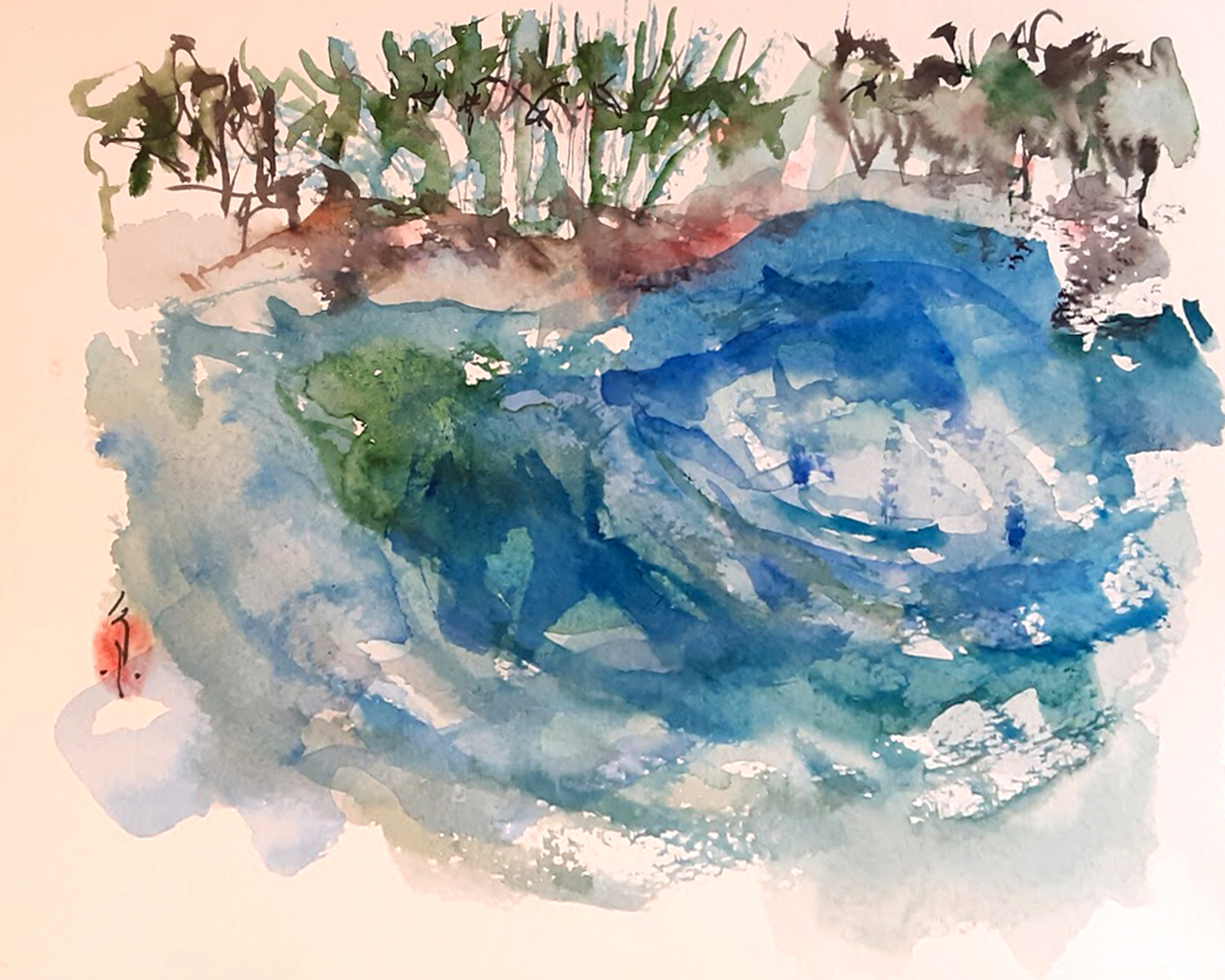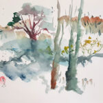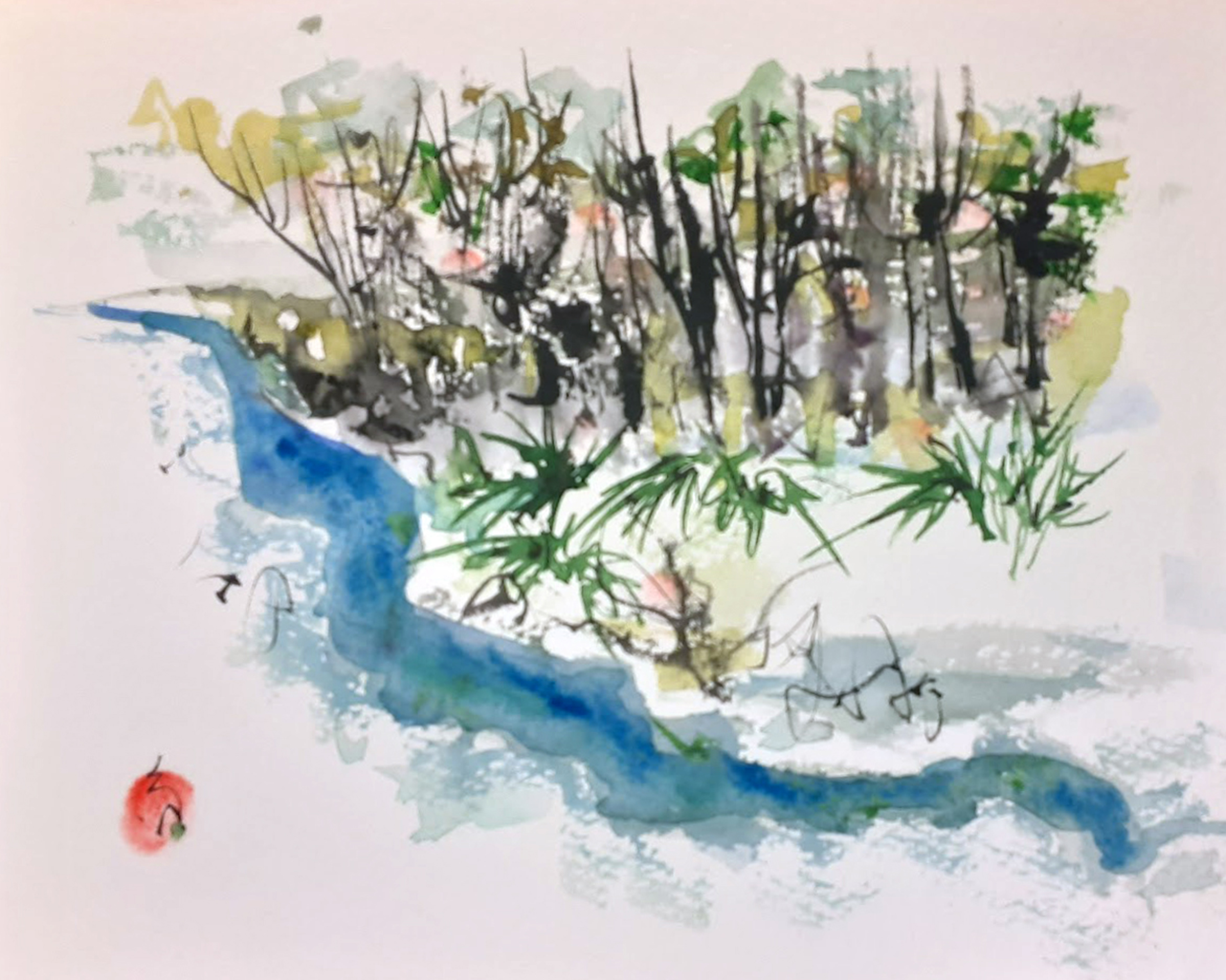 Ichetucknee Springs Suite of original watercolors is inspired by my weekly visits to the Ichetucknee Springs State Park in Columbia County Florida. The springs, spring run, wetlands and forest reveal themselves in changing patterns of flower bloom, birdsong and human activity. On some days the sun pours down and on other days the upwelling of spring water seems matched by the torrential downpour of rain from above, flashes of lightning reflecting off the shimmering surface of the spring pools.