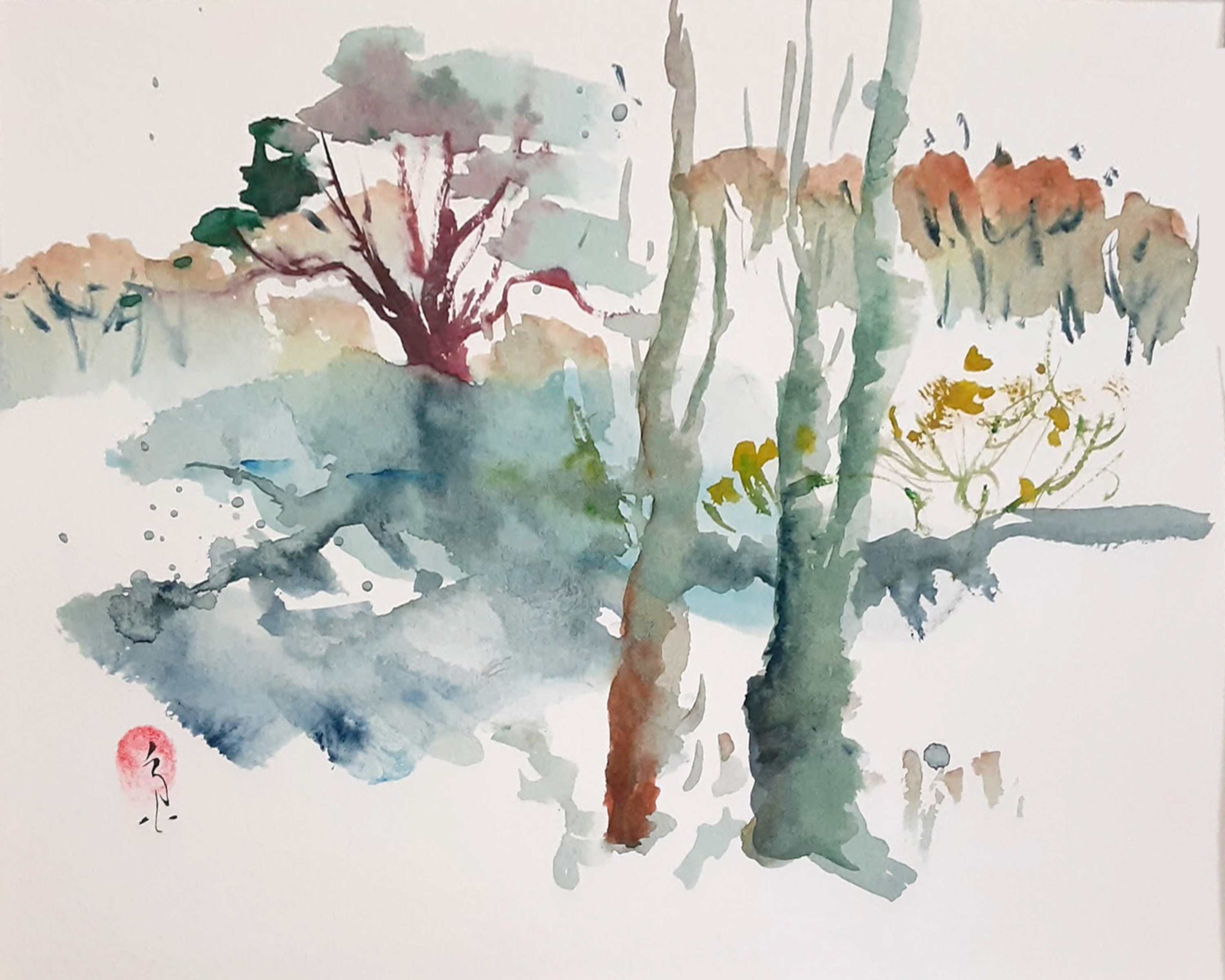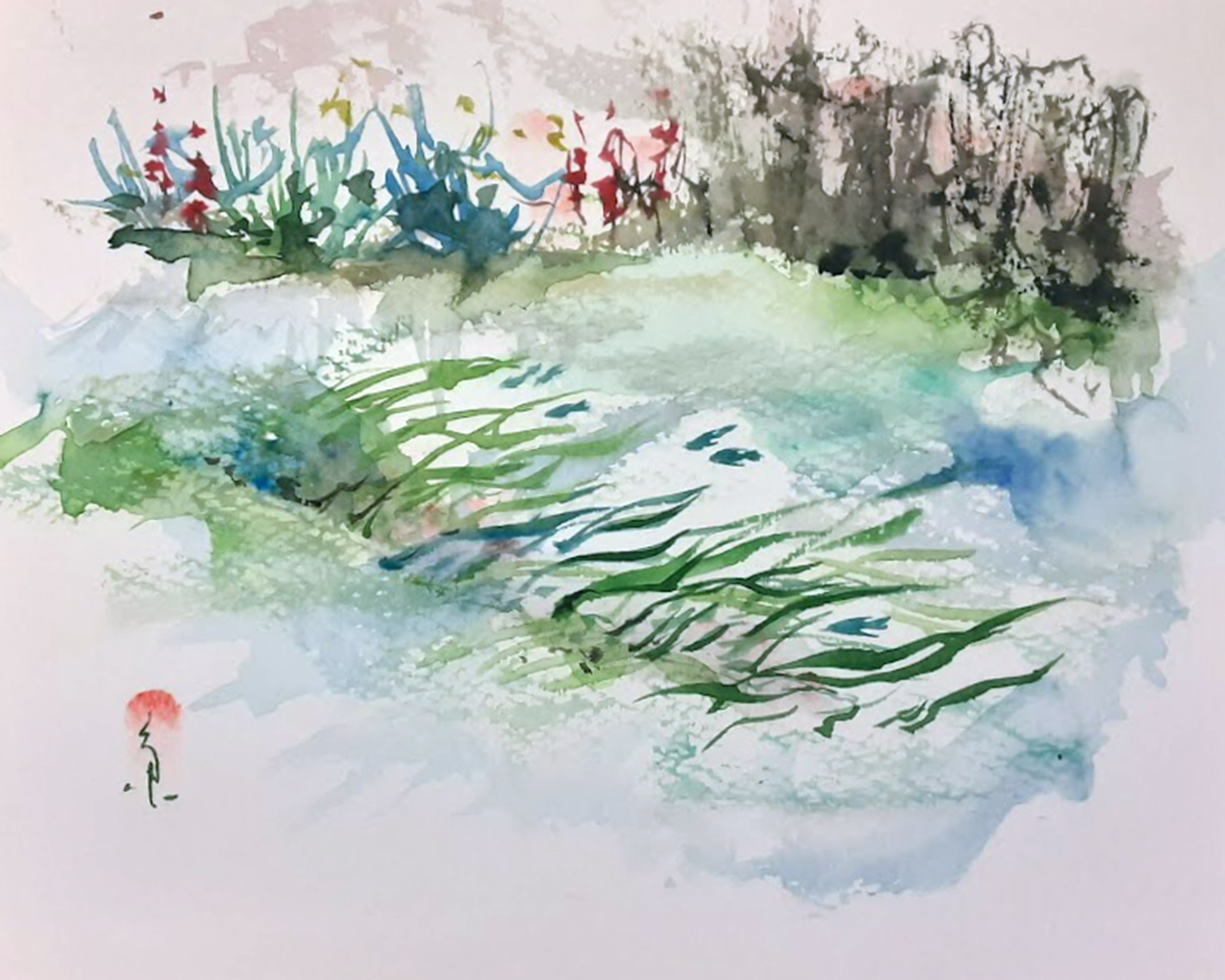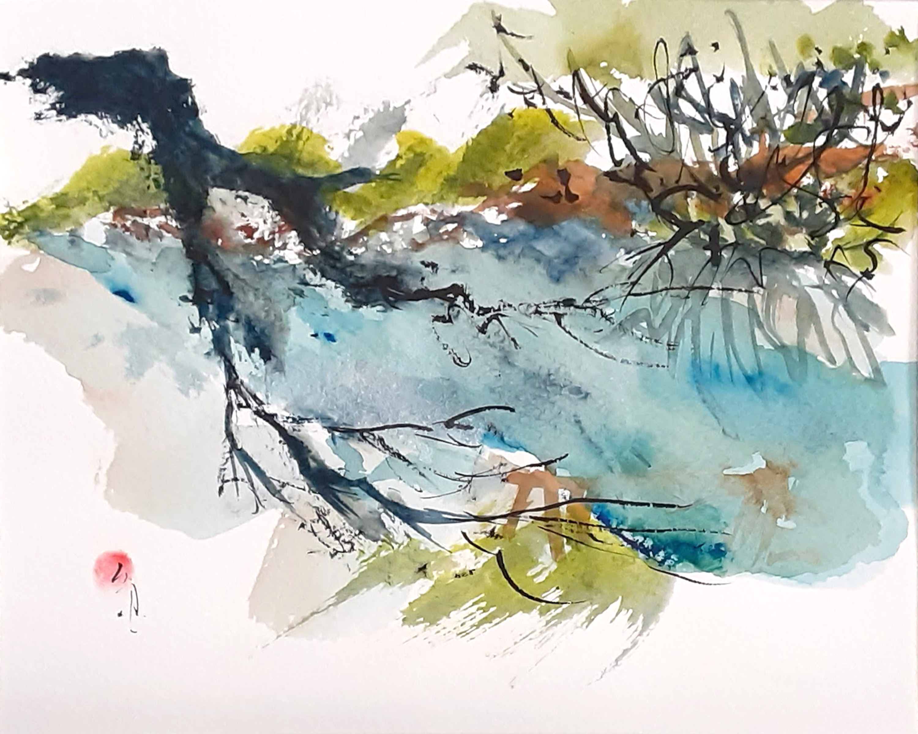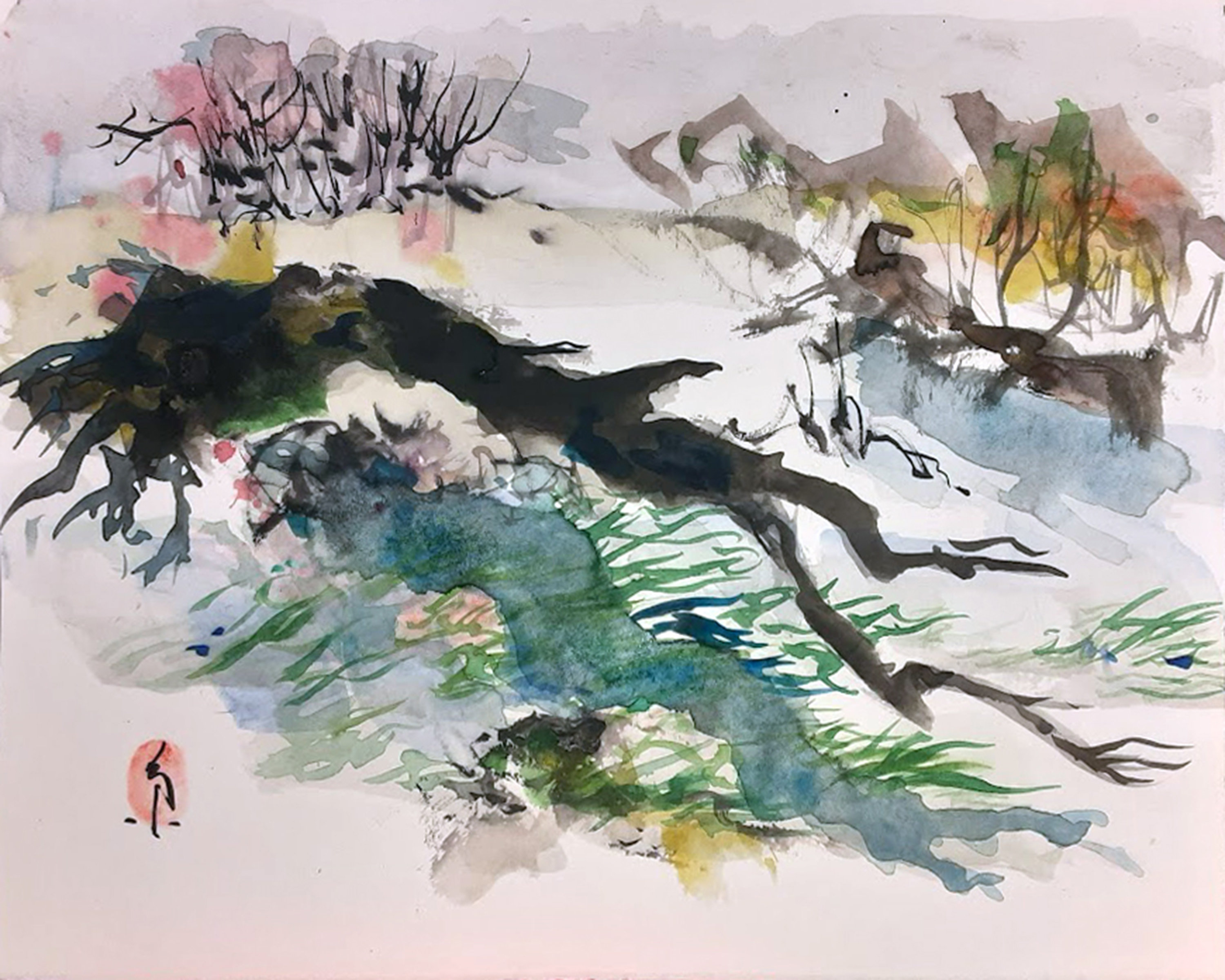 Ichetucknee Springs Suite of original watercolors is inspired by my weekly visits to the Ichetucknee Springs State Park in Columbia County Florida. The springs, spring run, wetlands and forest reveal themselves in changing patterns of flower bloom, birdsong and human activity. On some days the sun pours down and on other days the upwelling of spring water seems matched by the torrential downpour of rain from above, flashes of lightning reflecting off the shimmering surface of the spring pools.